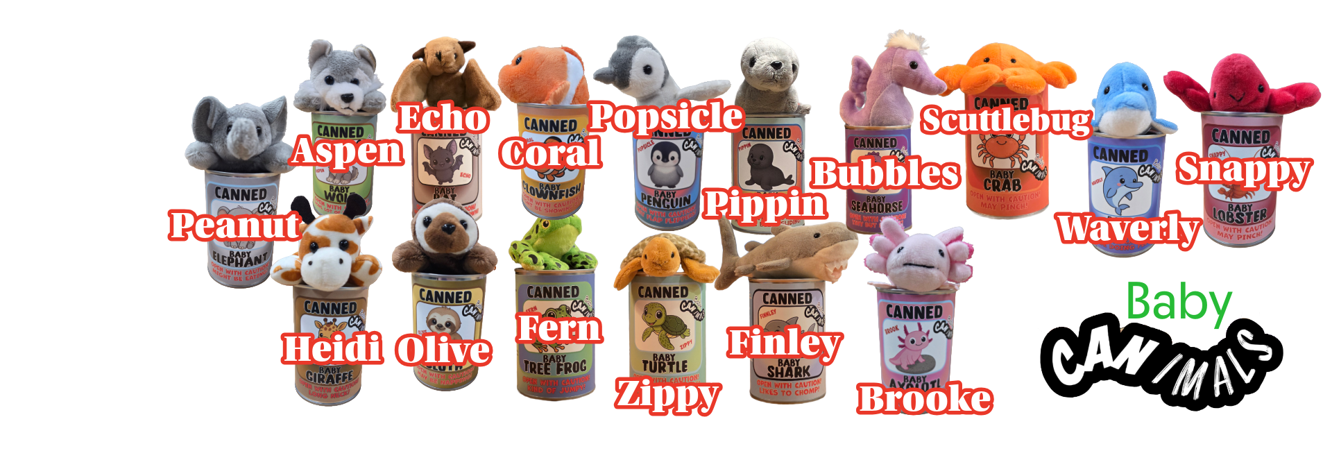 We love bringing joy and smiles to your customer's faces when they open their can from us. Our 6 kids (ages 1 through 15) help us come up with our ideas for which stuffies are the coolest to sell! Labels and cans are designed and made in the USA.