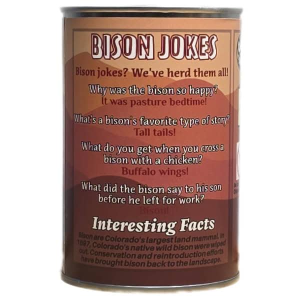 • Funny bison jokes and an interesting fact on the can.