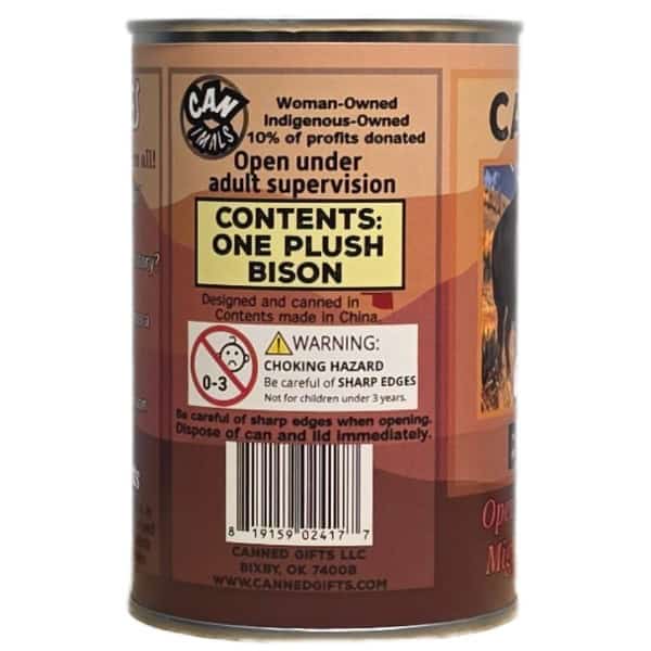 • Bison plush sealed in a can. Your choice of lid style: standard, pop top, or foil.