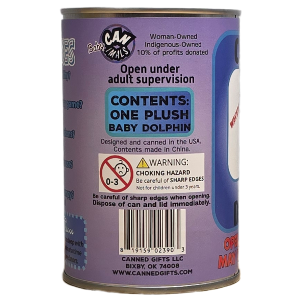 Included is 1 plush baby dolphin sealed in a can. Use a can opener to open the fun gift or choose a pop top lid!