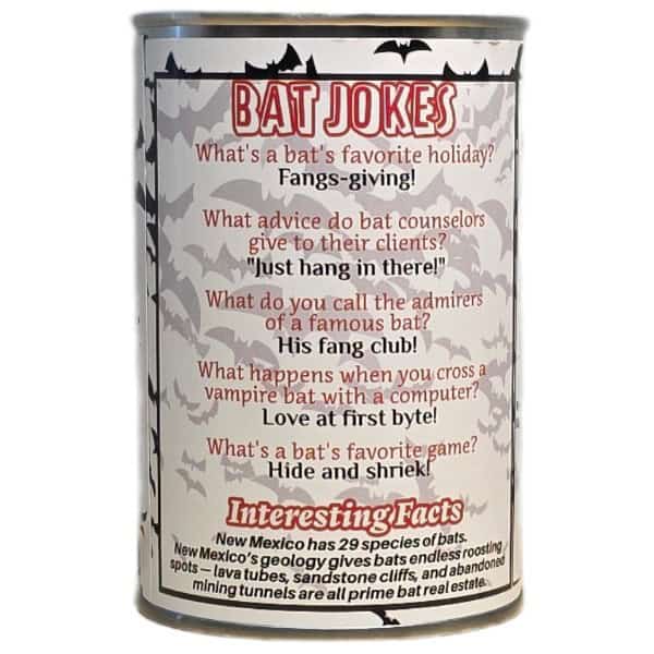 • Funny bat jokes and interesting facts on the can.