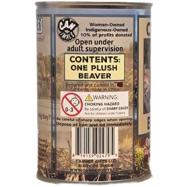• Beaver plush sealed in a can. Choose your lid style: standard, pop top, or foil.