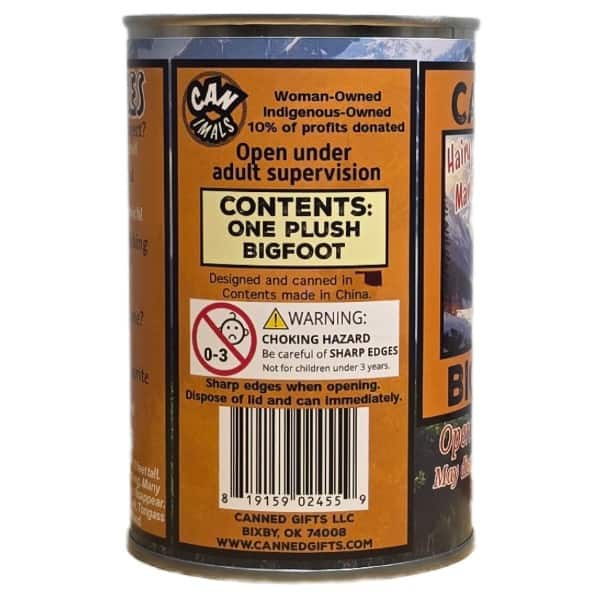 • Plush bigfoot sealed in a can. Your choice of lid style: regular, pop top, or foil.