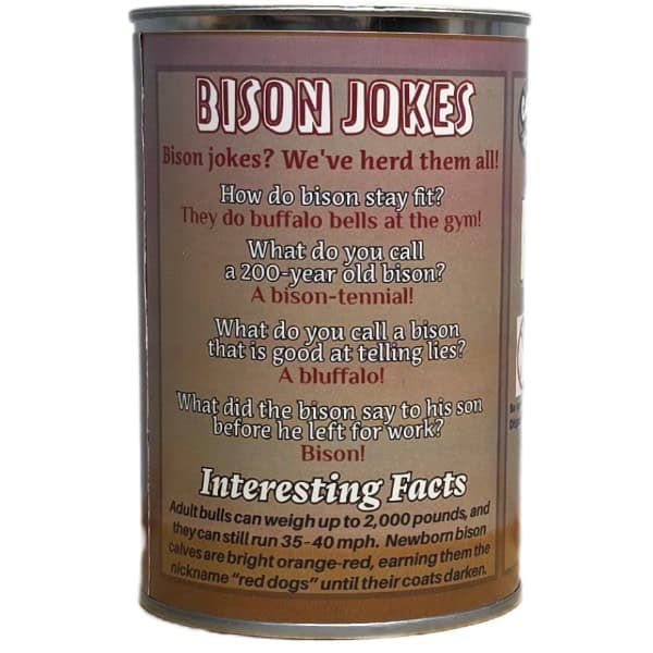 • Funny bison jokes and an interesting fact on the can.