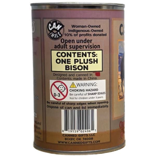 • Bison plush sealed in a can. Your choice of lid style: standard, pop top, or foil.