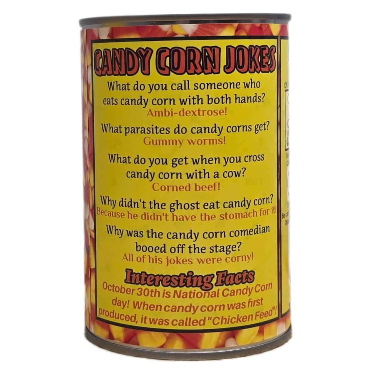 • Candy Corn plush sealed in a can. Choose your lid style: standard, pop top, or foil lid.