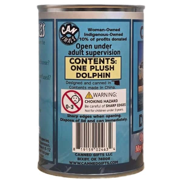 • Misty the Canned Dolphin. 1 plush dolphin sealed in a tin can. Use a can opener to open this fun gift or choose the pop-top lid!