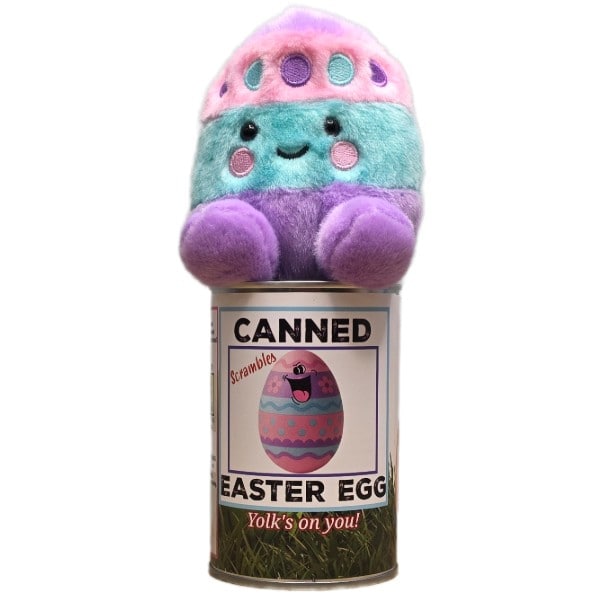 • Easter Egg plush sealed in a can. Your choice of lid style: pop top, foil, or regular (open with a can opener)!