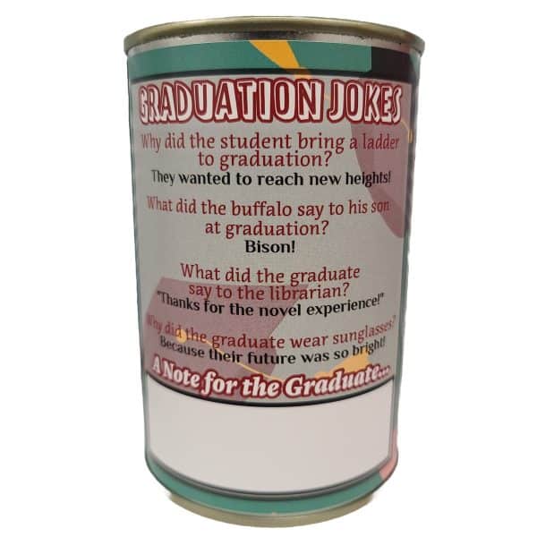 • Graduation cap plush sealed in a can. Use a can opener to open the fun gift or choose the pop top lid!