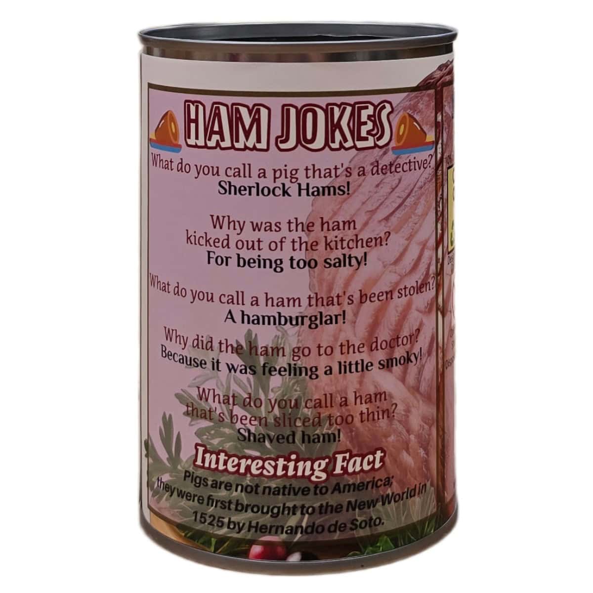 • Funny ham jokes and an interesting fact on the can.
