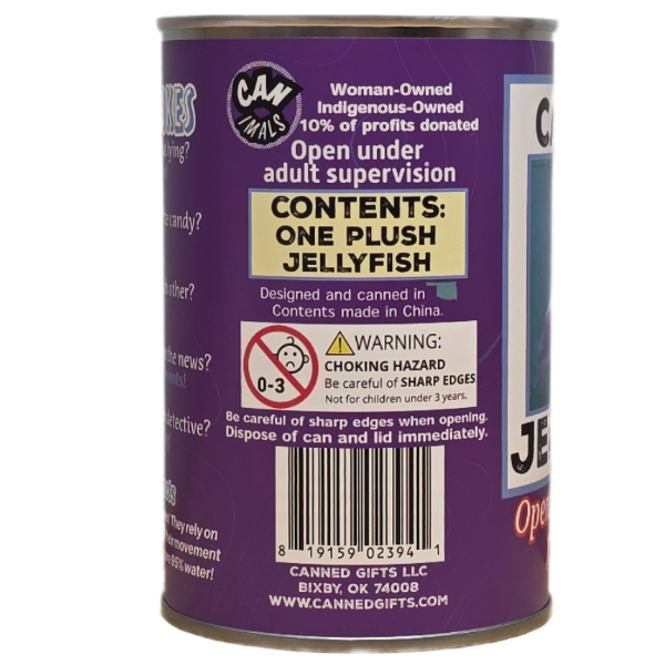 • Jellyfish plush sealed in a can. Choose your lid style: standard, pop top, or foil.