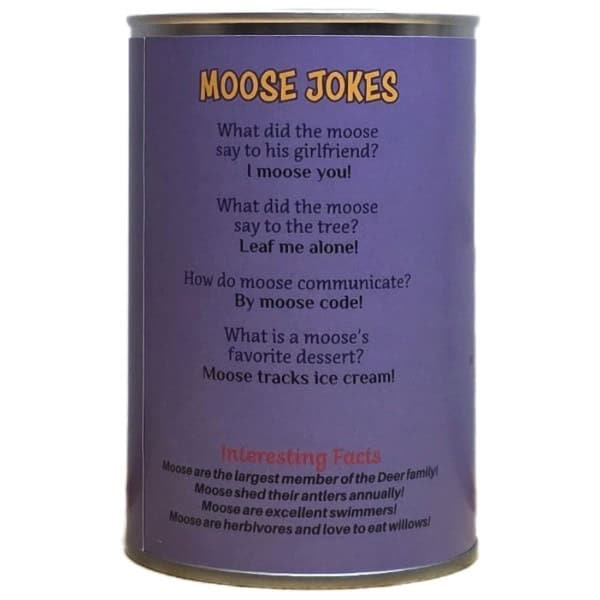 • Funny moose jokes and an interesting fact on the can.