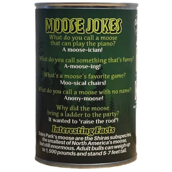• Funny moose jokes and an interesting fact on the can.