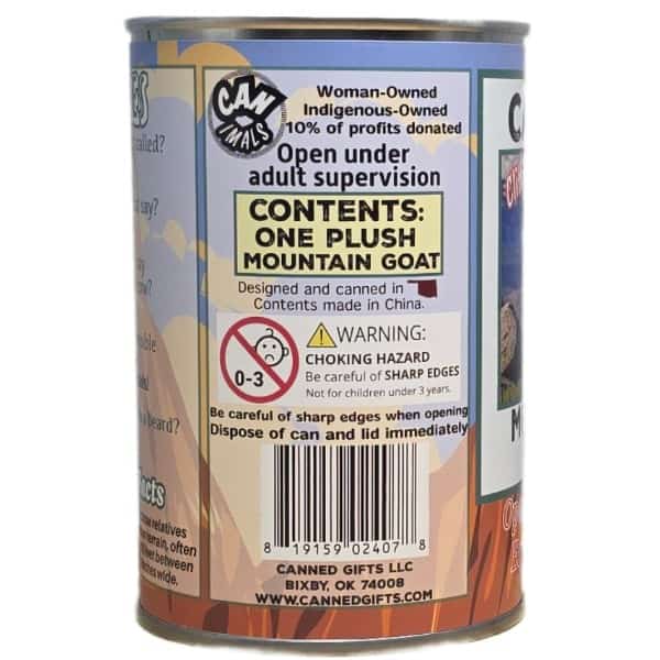 • Plush mountain goat sealed in a can. Your choice of lid style: regular, pop top, or foil.