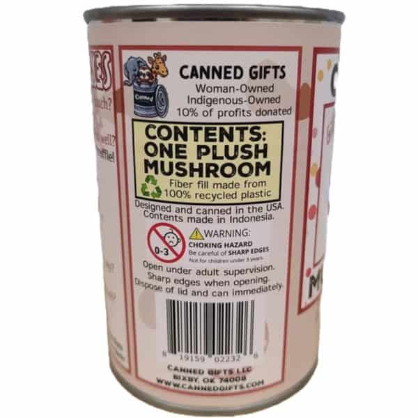 • Amanita mushroom plush sealed in a can. Use a can opener to open the fun gift or choose the pop top lid!