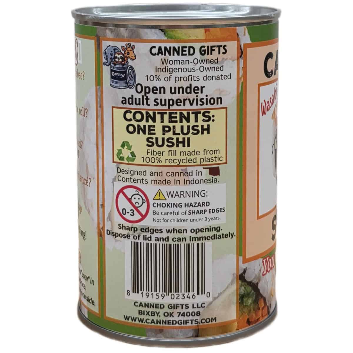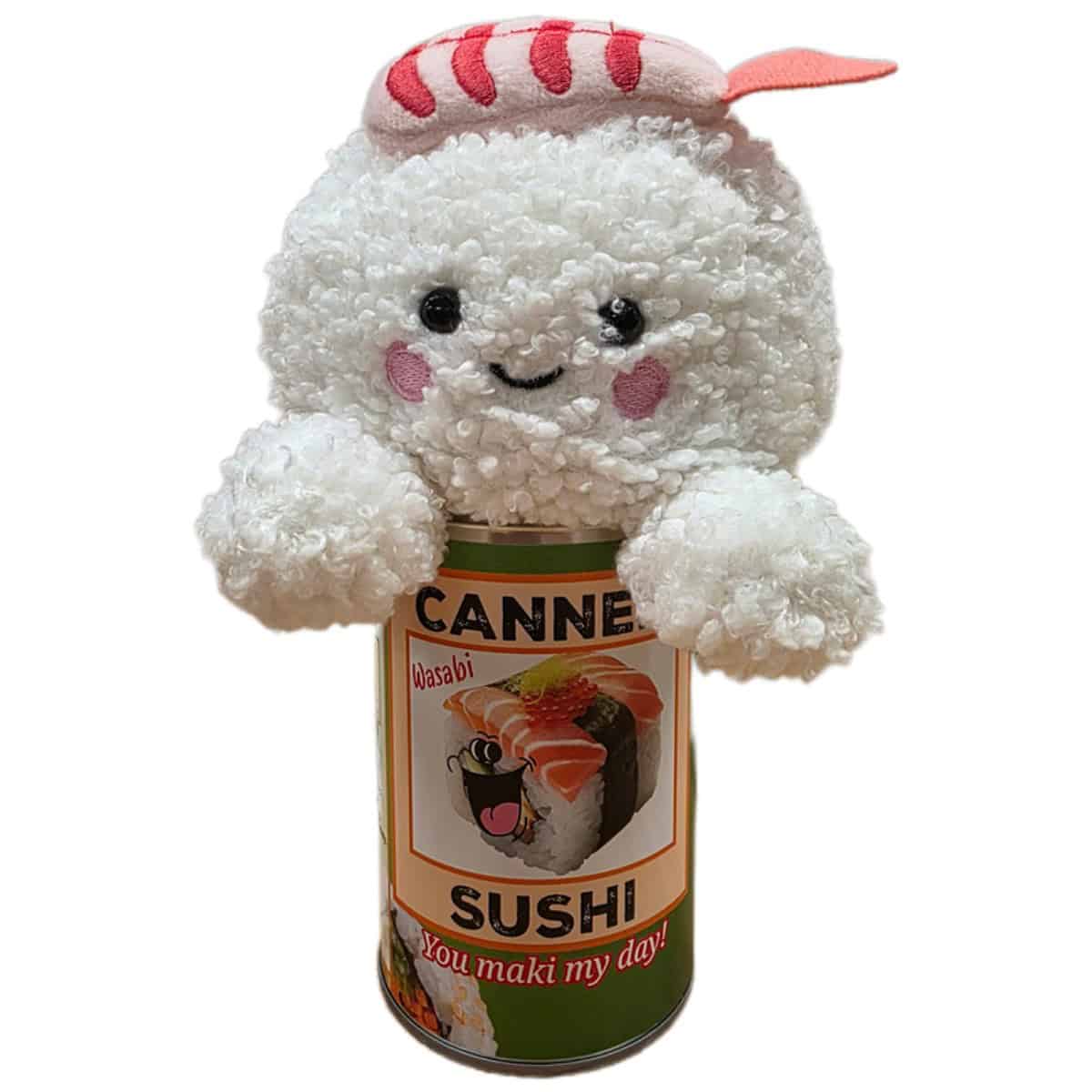 • Sushi plush sealed in a can. Choose your lid style: standard, pop top, or foil.